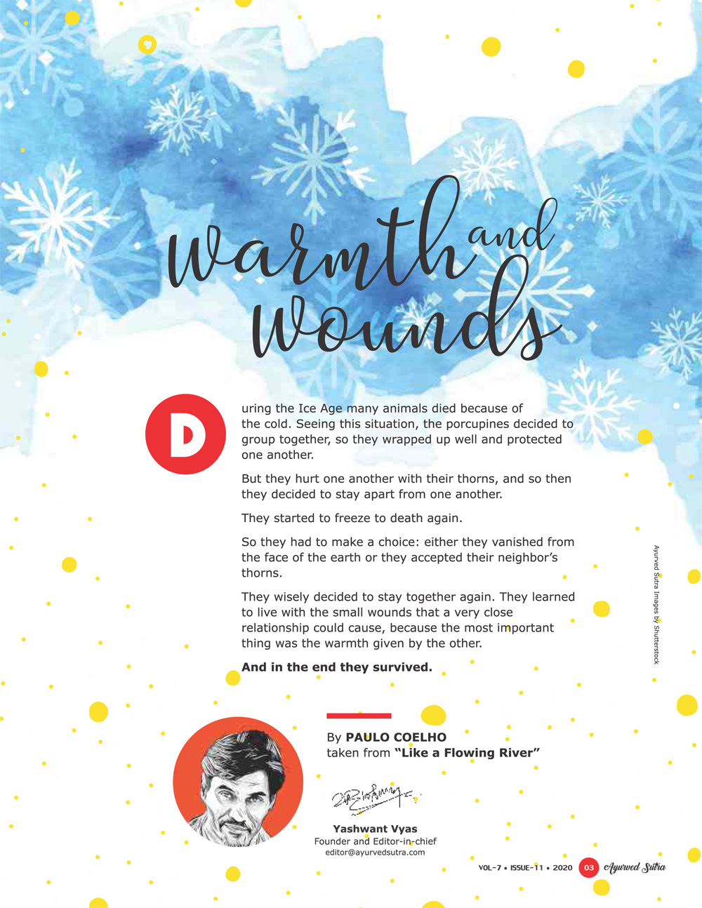 The idea of Ayurved Sutra is to compliment Ayurveda with novel world view, latest clinical research, events, activities and interactions and it is rather a Handbook of holistic life with a 360 degree review mechanism. It integrally gels the elements of a mainstream magazine with an experiential research journal.